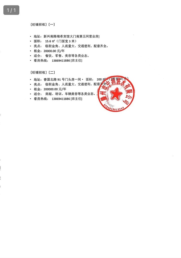 商铺招租公告