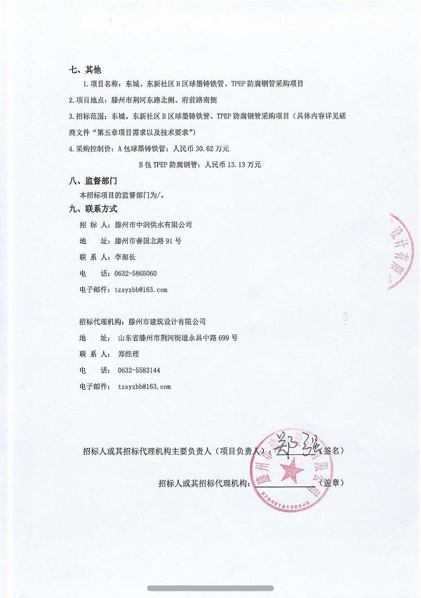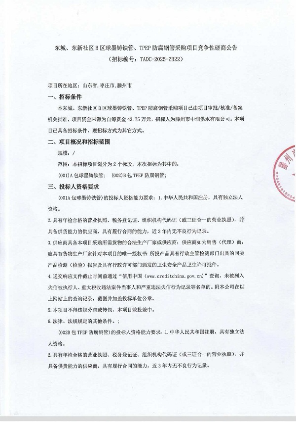 东城、东新社区B区球墨铸铁管、TPEP防腐钢管采购项目竞争性磋商公告