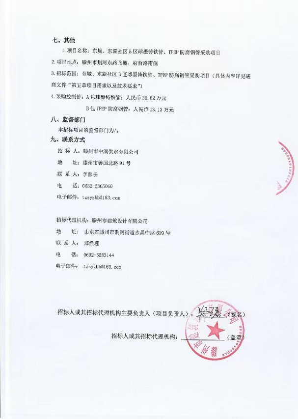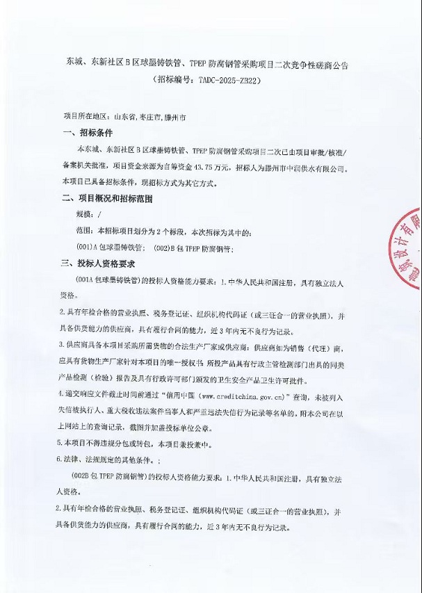 东城、东新社区B区球墨铸铁管、TPEP防腐钢管采购项目二次竞争性磋商公告