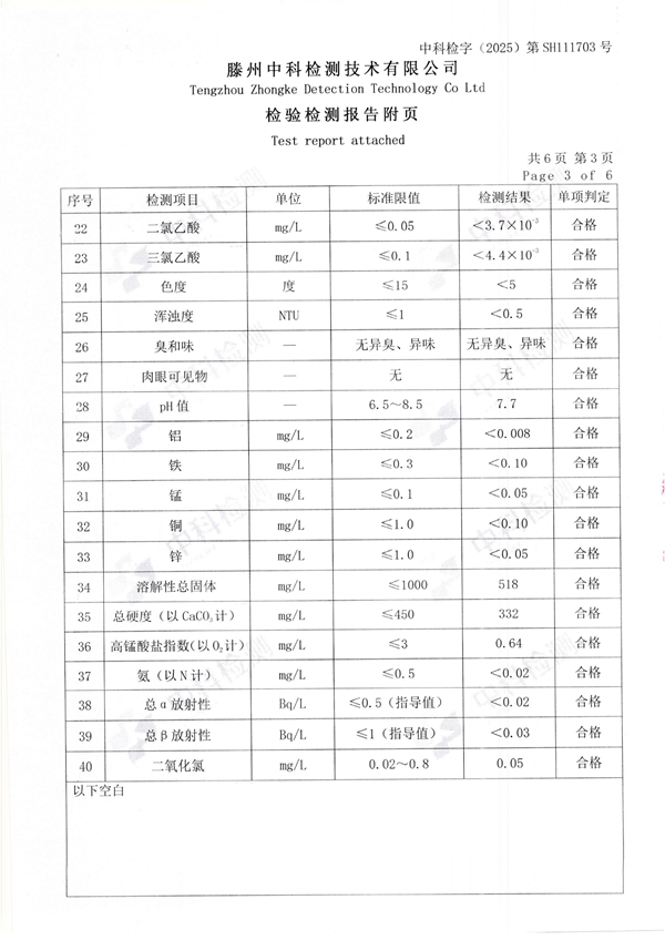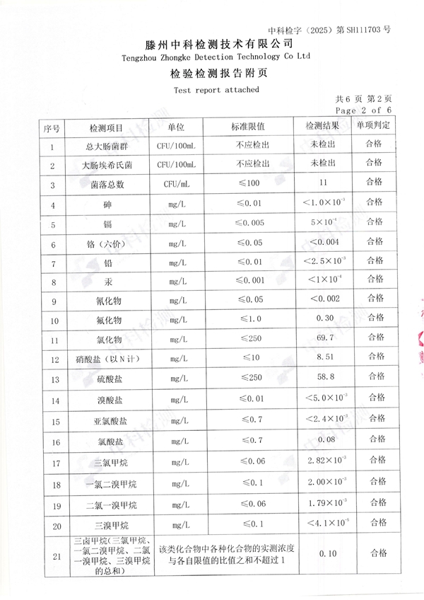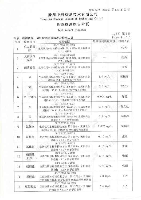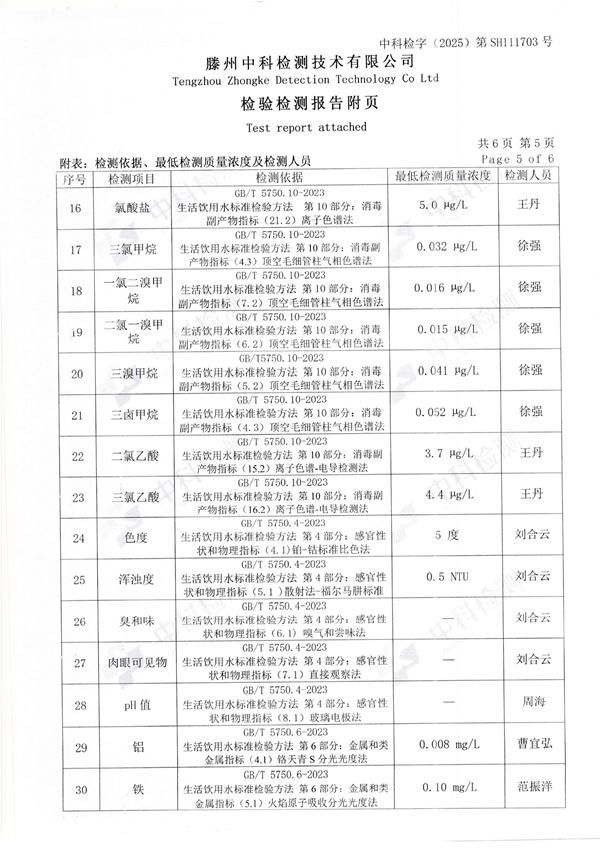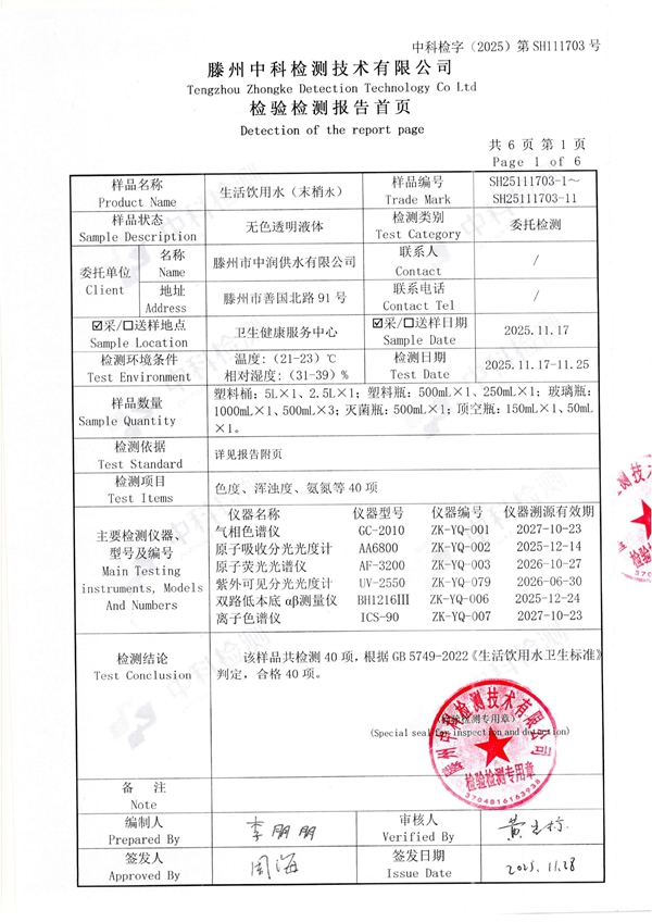 2025年11月份生活饮用水水质报告(末梢水)