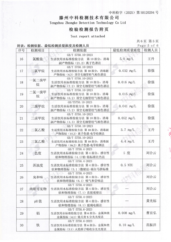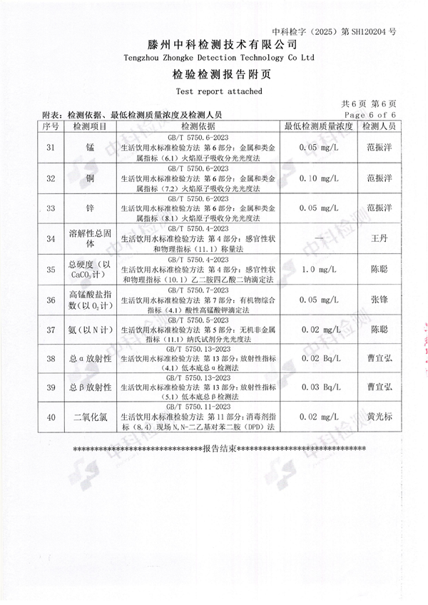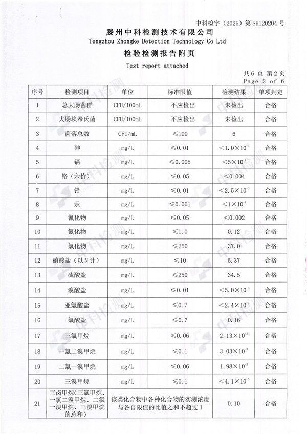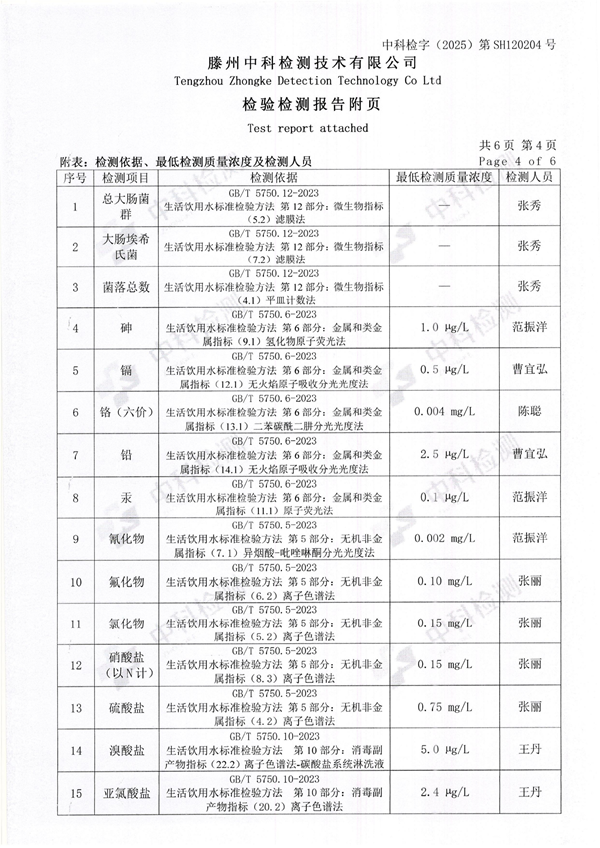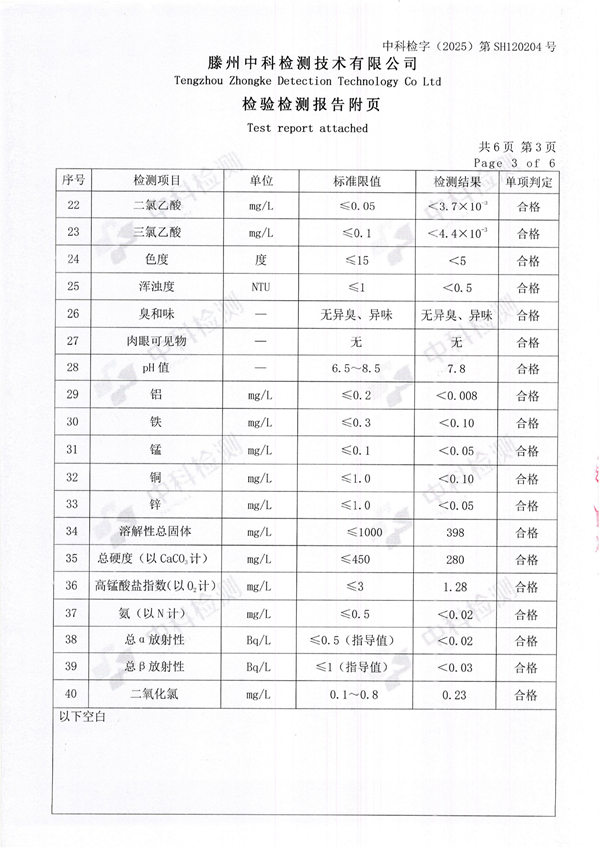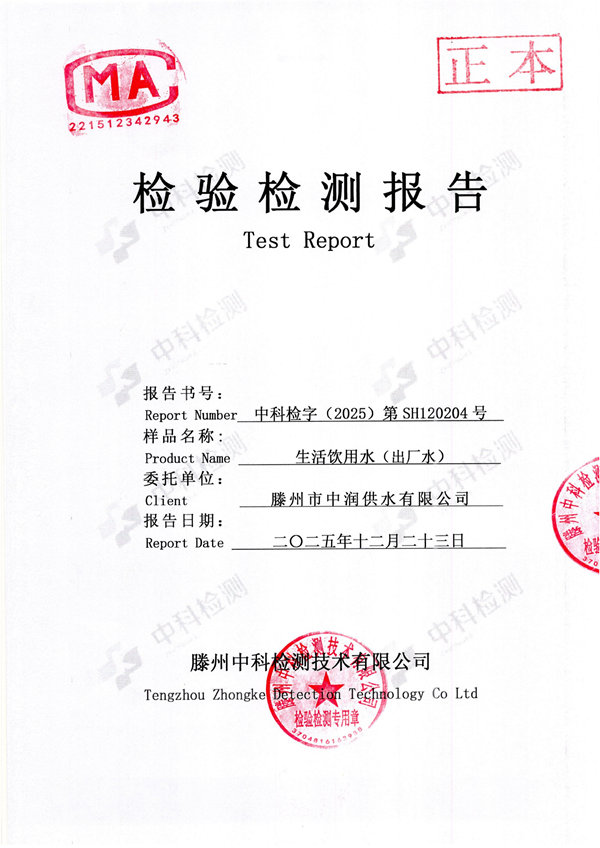 2025年12月份生活饮用水水质报告(出厂水)