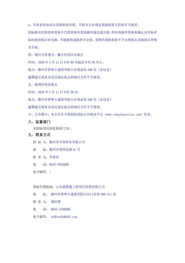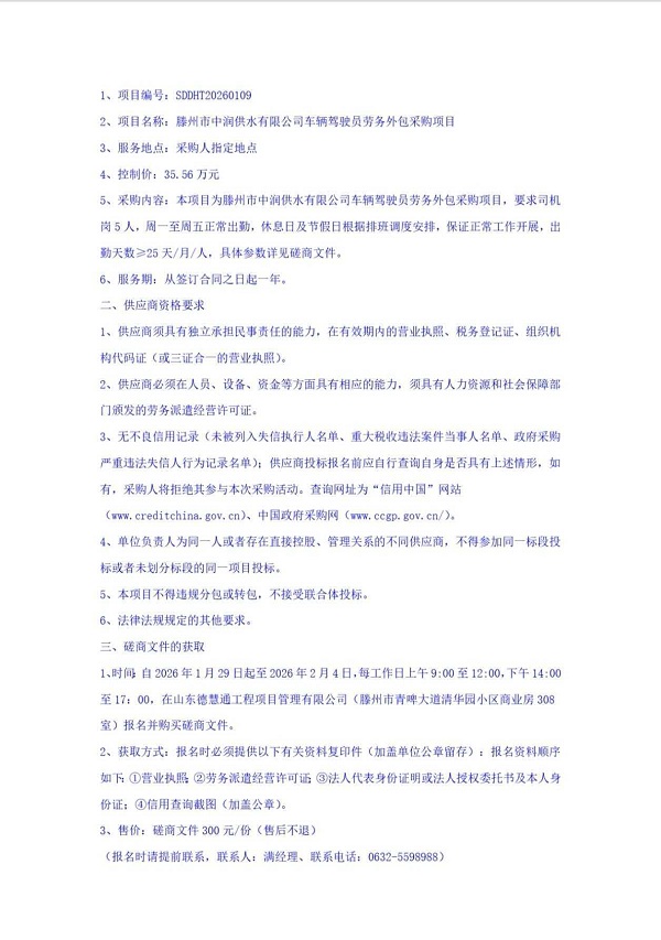 滕州市中润供水有限公司车辆驾驶员劳务外包采购项目磋商公告
