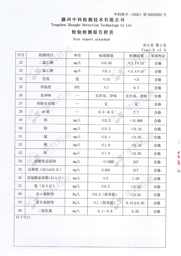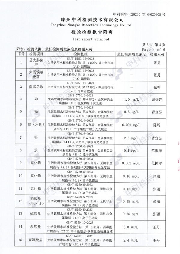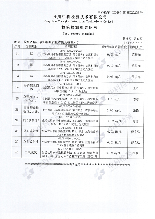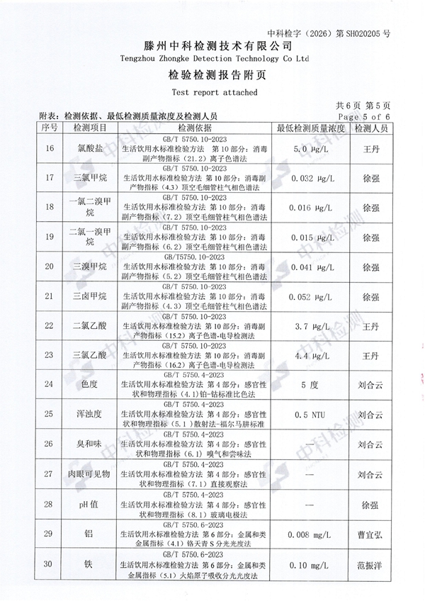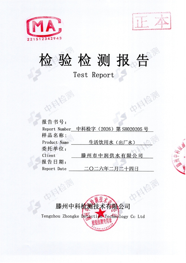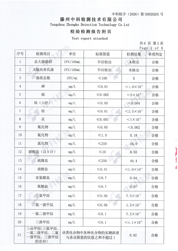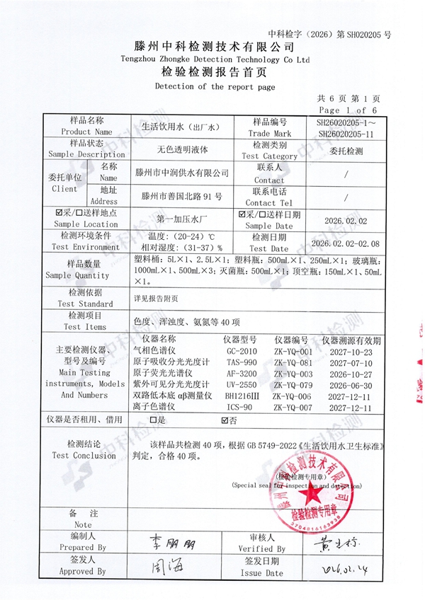 2026年2月份生活饮用水水质报告(出厂水)