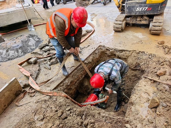 抵达现场后,抢修人员立即设置安全警示、疏导现场秩序。面对管线复杂、漏水量大等实际困难,抢修队伍科学分工、高效联动,快速开展漏点定位、积水抽排等前期处置,为抢修施工创造有利条件。连续奋战3小时,于当日上午10时完成管道修复,全面恢复正常供水,切实保障了居民节日用水需求,赢得群众一致认可与好评。